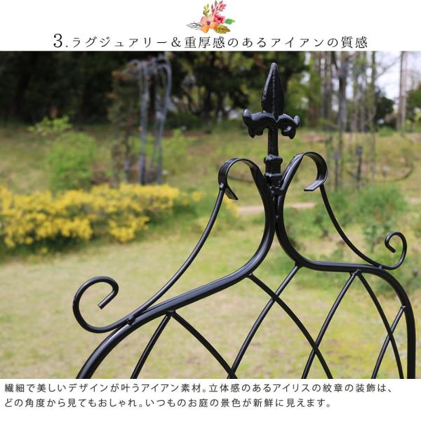 流れるようなトップラインが奏でる、優美な空間。心地よい流線型が、華やぎのあるお庭に変えてくれる、ドレープデザインのアイアンフェンスです。アイアンは丈夫で耐久性があり、薔薇やクレマチス、アイビーなどの誘引がしやすいだけでなく、装飾品のように美しいので、お庭にあるだけで素敵ですね。設置は簡単、地面に挿すだけ。バリエーション豊富なので、シリーズで揃えれば、統一感のあるお庭が作れますよ。※北海道・沖縄・離島は別途送料が必要となります。