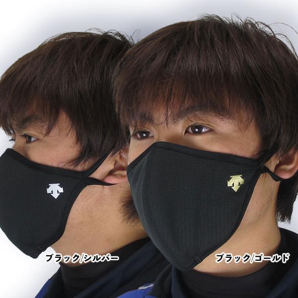 ●大人気のデサントマスクでカラーオールブラックのゴールド、シルバーのロゴ仕様は
