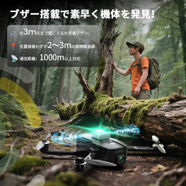 【ブザーアラート搭載で安心の通知機能】発信機の状態を音でわかりやすくお知らせするブザー機能を搭載。離れた場所でも異常を即座に把握でき、安全な飛行をサポートします。