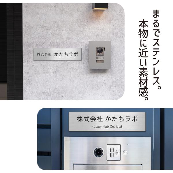 表札 会社 プレート SS 100×25 ステンレス調 シルバー 会社名 屋外 ポスト 玄関 マンション おしゃれ 店舗 看板 オーダー 屋外対応 シール式 メール便 送料無料