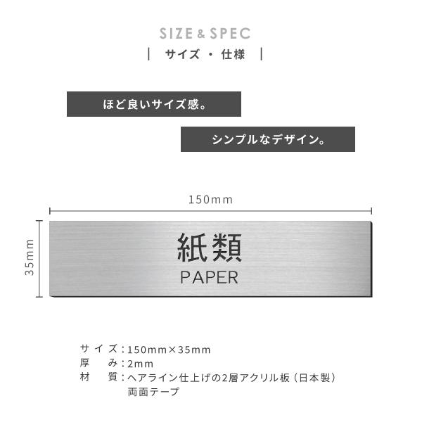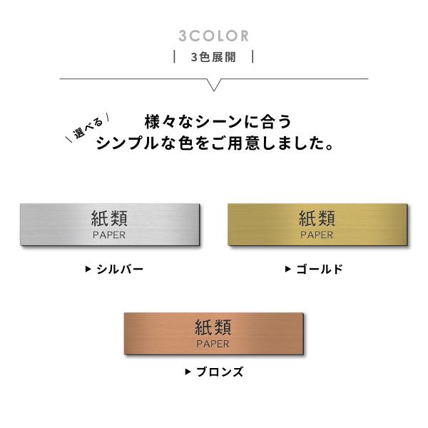 サインプレート 紙類 paper シルバー ステンレス調 ゴールド 真鍮風 ブロンズ 銅板風 プレート ごみ 分別 案内 表示 おしゃれ マンション アパート ゴミ箱 ごみ捨て場 標識 会社 オフィス お店 店舗 事務所 表示板 屋外OK シール式 アクリル製 日本製