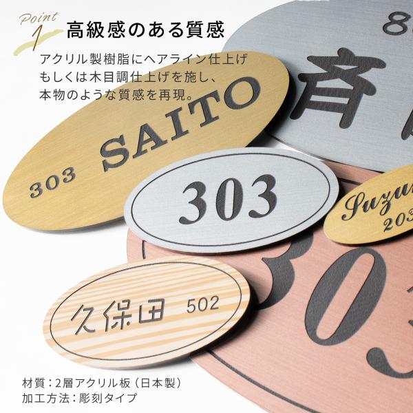 部屋番号 楕円 表札 シール 貼るタイプ プレート ポスト 小さい 番地 オーダーメイド ステンレス調 木目 おしゃれ 屋外 アクリル シール 防水 ルームナンバー