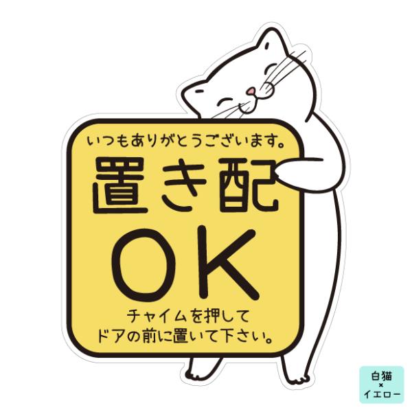 置き配 マグネット ステッカー 猫 ねこ ネコ ドア 宅配BOX (チャイムを押して ドアの前に) 宅配ボックス 磁石 かわいい おしゃれ 屋外対応 メール便送料無料