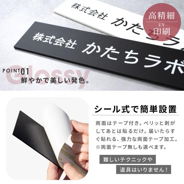 表札 会社 プレート オーダーメイド SS〜L モノトーン 白黒 オフィス表札 ポスト 名入れ オリジナル UV印刷 マンション 人気 屋外 テープ付 シール式 送料無料