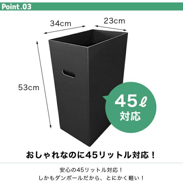 ダンボール ゴミ箱 45L 45リットル ゴミばこ ごみ箱 ごみばこ インテリア 頑丈 おしゃれ かわいい スリム 分別 黒 1個 ブラック ダストボックス 屋内 屋外 軽量