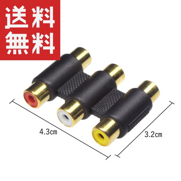 RCA延長コネクタ RCA中継コネクタ 赤白黄 3ピン メス/メス 金めっき