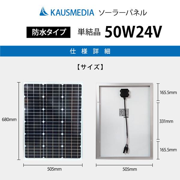 24Vバッテリー対応 50W ソーラー充電 ケーブルセット 単結晶 アルミフレーム 発電蓄電