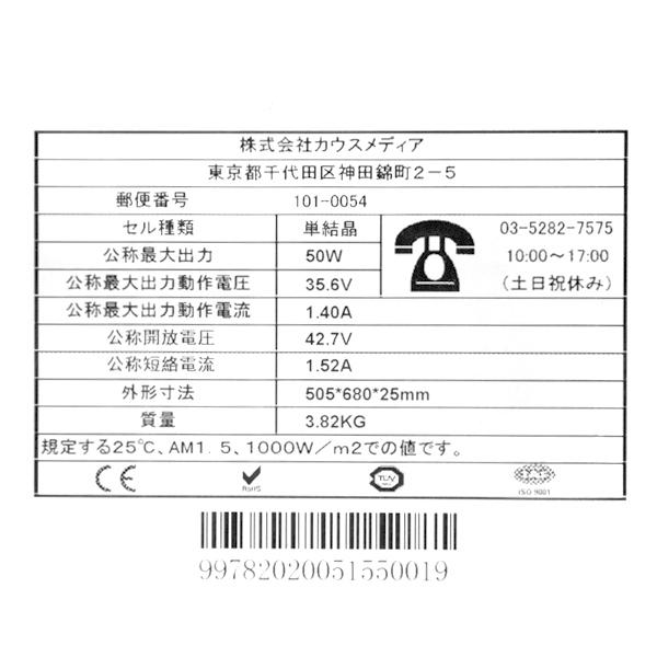 ・24Vシステム対応 50W ソーラーパネル アルミフレーム