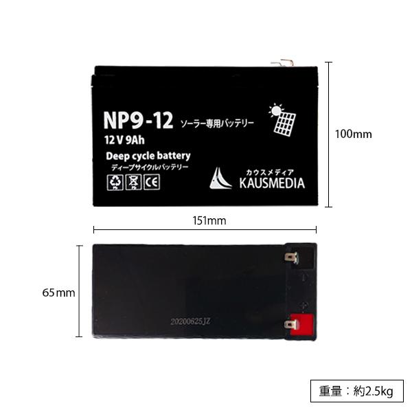 9Ah 12V ディープサイクルバッテリー NP9-12 ソーラー充電 発電 蓄電池 密閉型 電気柵用 KAUSMEDIA