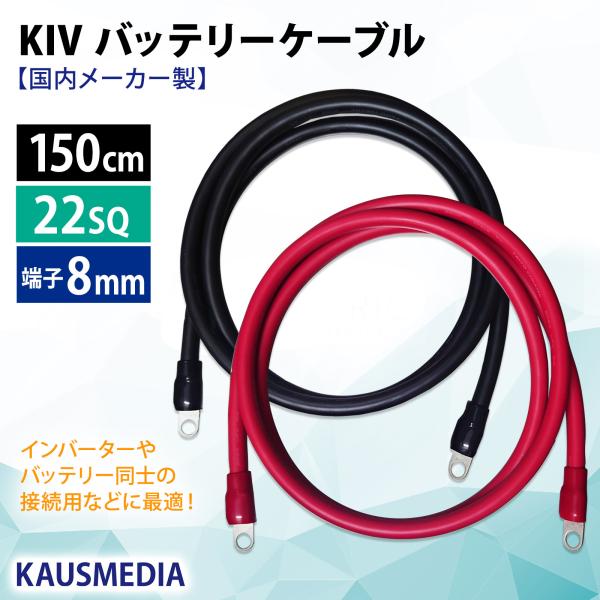 22SQ KIV バッテリーケーブル 150cm ニチフ 端子 R22-8s 圧着済 国内メーカー製 インバータ接続 赤黒セット 1.5m