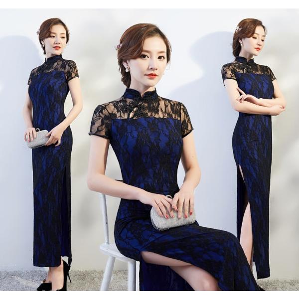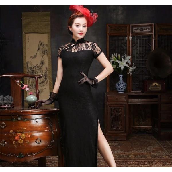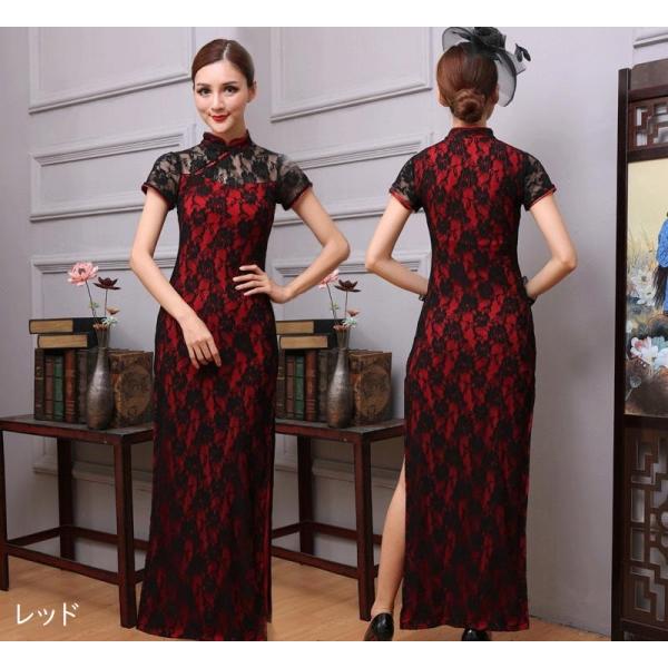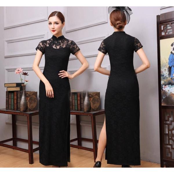 チャイナドレス ロング丈 サイドスリット 半袖 レディース 女性 婦人 タイトワンピース 大きいサイズ ゆったり コスプレ シースルー レース 透け感