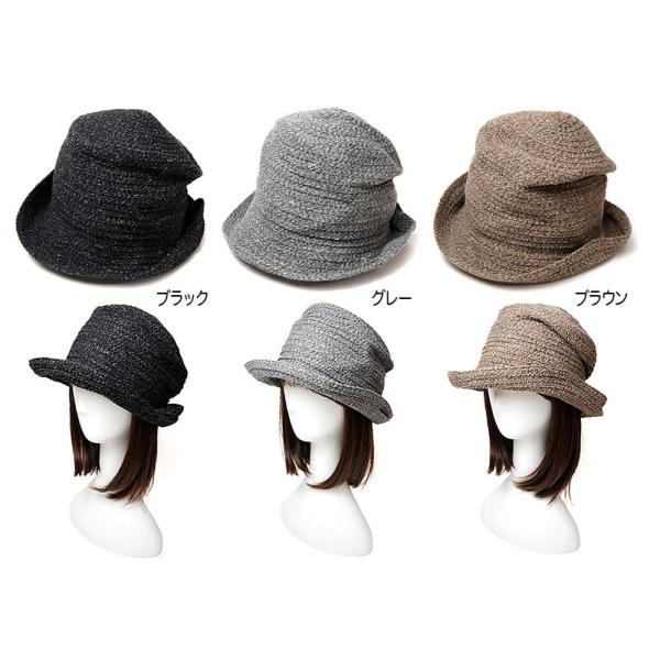 ハットの後ろつば部分を織りあげて留めたようなデザインで