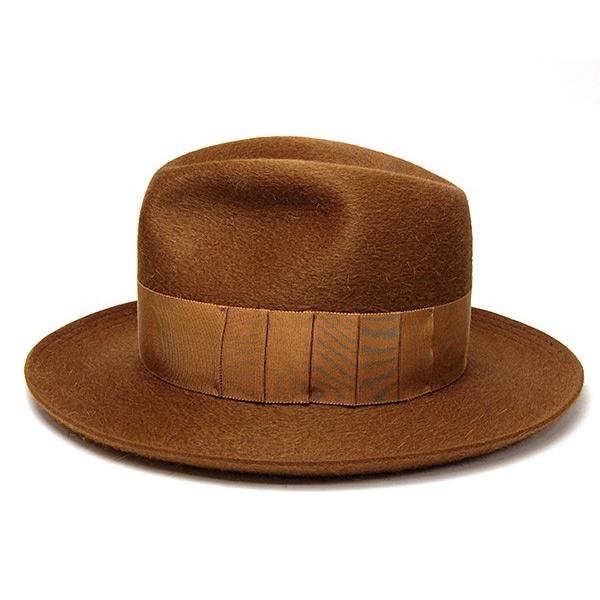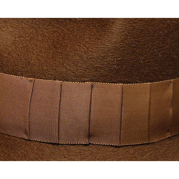 フェルト帽体には珍しいキャメルヘア(らくだ)をラビットファーにミックスして作られた帽子です。キャメルは毛が長めで、柔らかく保温性が高いという特質がありますが、