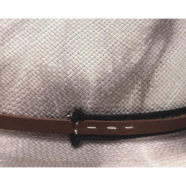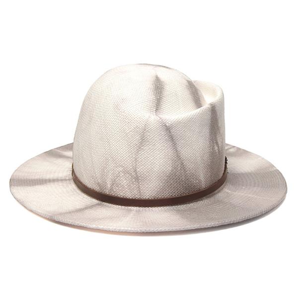 オフホワイトのパナマに個性的な染めムラが特徴的な帽子は1つ1つ染め模様の異なる1点もののハンドメイドハットのような雰囲気に!