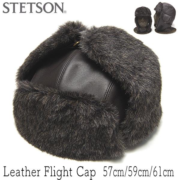 帽子 ファー付きレザー飛行帽 STETSON ステットソン メンズ ユニセックス 秋冬 本革 防寒帽 パイロットキャップ アビエイター 大きいサイズの帽子アリ 25AWS