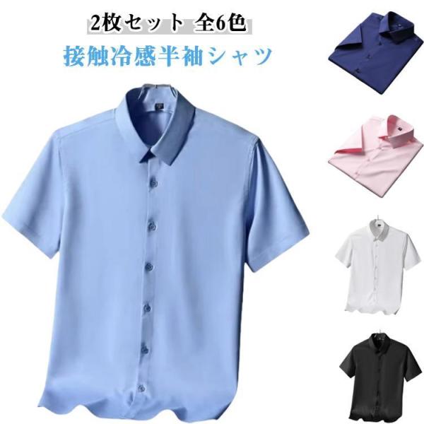クールビズ 【2枚セット】半袖 ワイシャツ ノーアイロン ビジネス シワにならない ストレッチ メンズ シャツ Yシャツ 接触冷感 冷感 アイスシルク
