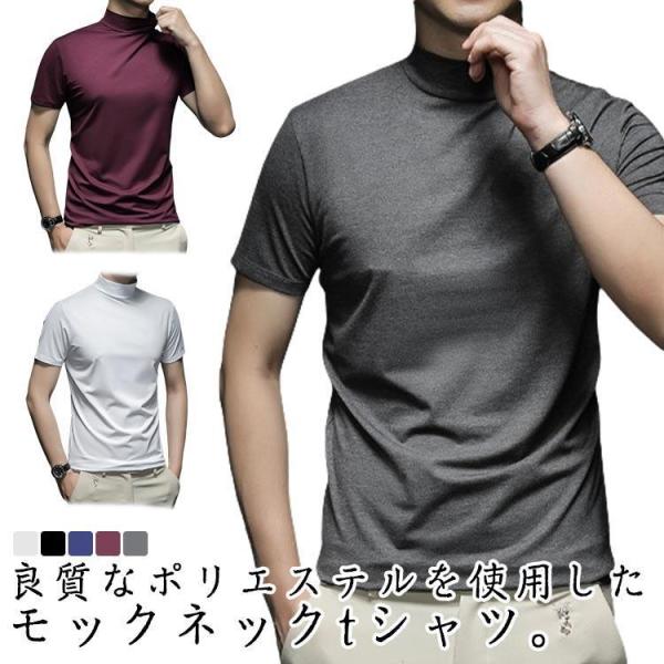【2枚セット】モックネック tシャツ メンズ 半袖 インナー ハイネックtシャツ カットソー ゴルフウエア 細身 トップス ストレッチ 紳士 無地 シ