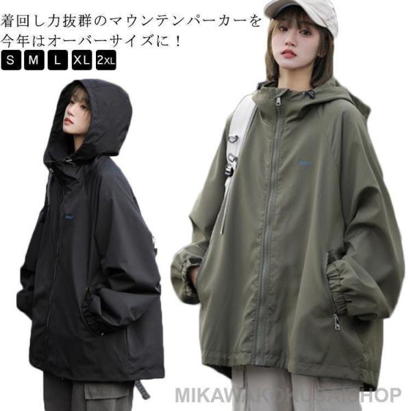 春 アウター レディース ライトアウター ボリュームネック マウンテンパーカー オーバーサイズ フード付き 裏地付き 撥水 秋 カジュアル