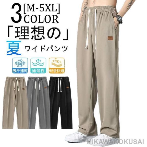 ワイドパンツ メンズ 大きいサイズ 夏 カジュアル ズボン 接触冷感 ゆったり ストレッチ ビッグシルエット ワイドパンツ 春物 夏服 ボトムス 無地 薄手