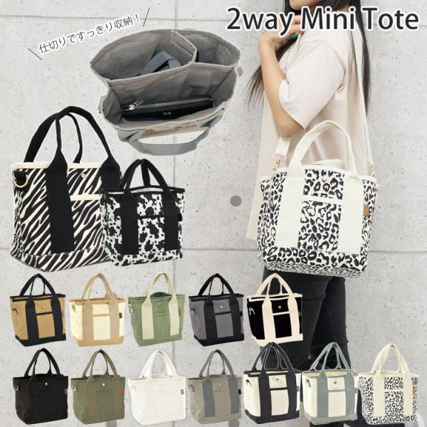 2way トートバッグ メンズ レディース おしゃれ キャンバス 仕切り付き 自立 小さめ 小さい 軽い 帆布 ランチバッグ マチ広 オシャレ カジュアル レオパード