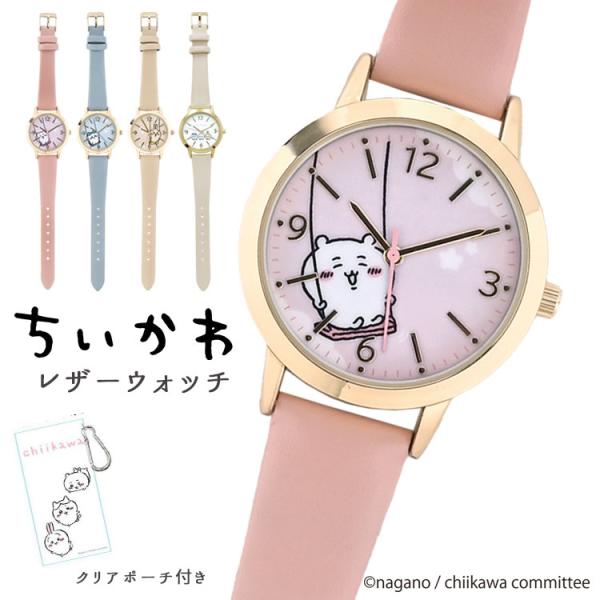 腕時計 レディース ちいかわ グッズ かわいい ブランド うさぎ ハチワレ レザーウォッチ シンプル 大人 おしゃれ キャラクター ピンク ブルー プレゼント 子供