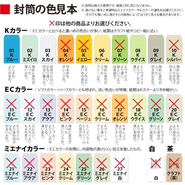 ●封筒色 : こちらは「Kカラー」より選べる商品です。