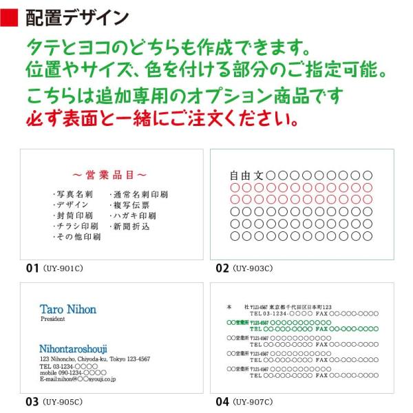 ●内容 : こちらは名刺の裏面にカラー印刷を追加するオプション商品です。必ず表面と同時にご注文ください。