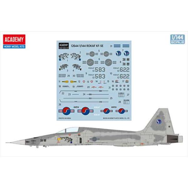 デカール2種(大韓民国空軍)付属。キット KF-5Eは韓国でライセンス生産されたF-5Eを再現しています。