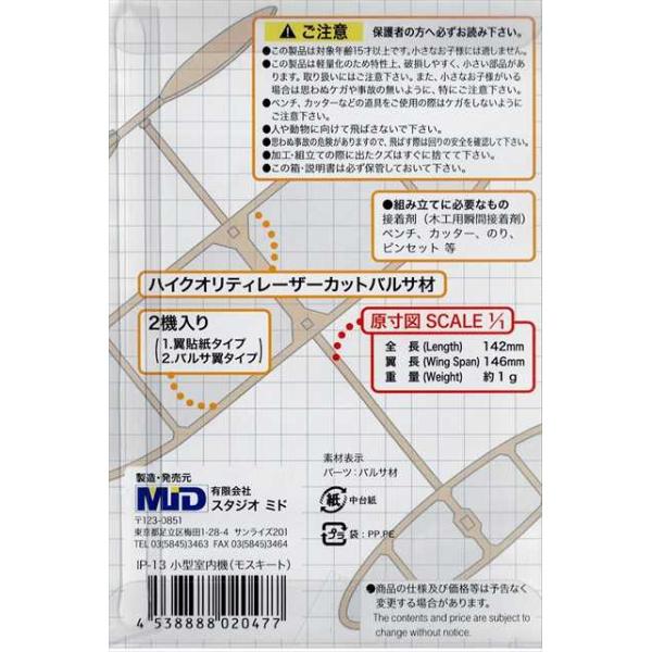 スタジオミド IP-13 室内用ライトプレーン モスキート 2機入り キット