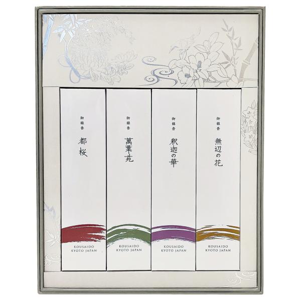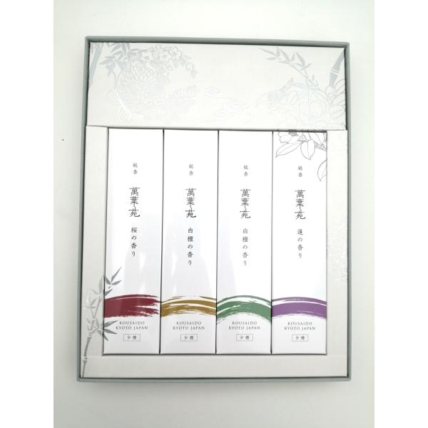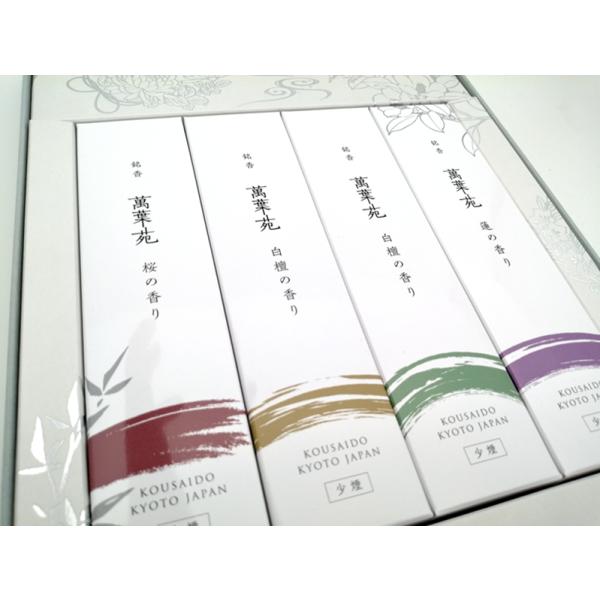 京都香彩堂進物線香萬葉苑/少煙白檀・桜・蓮3種類アソート/仏事に最適