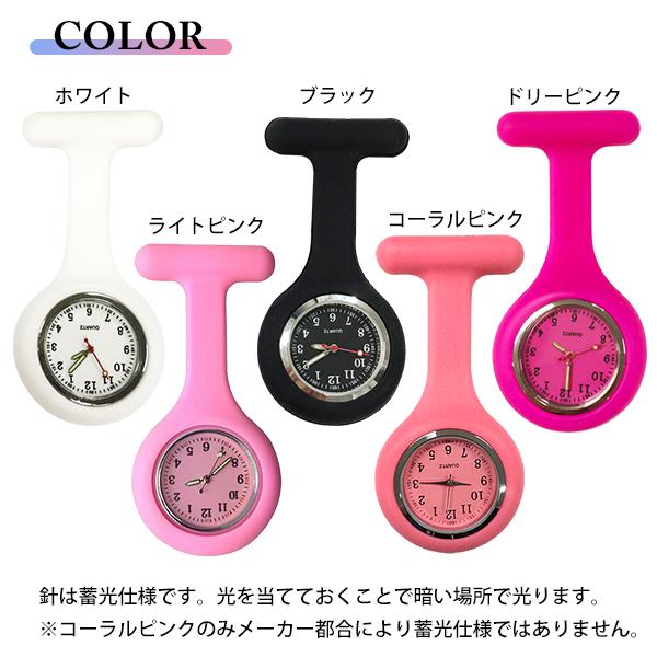 シリコン ナースウォッチ ホワイト イエロー コーラル ドリー ピンク ライトピンク 逆さ文字盤 懐中時計 看護師 看護婦 脈拍測定 ポケット 安全ピン アナログ