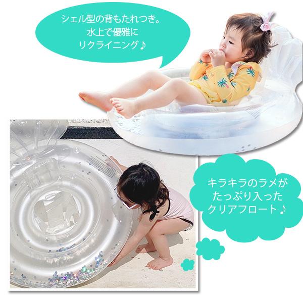 クリアシェルフロート 足穴タイプ O型タイプ 1〜9歳ラメ入り 子供 赤ちゃん 浮き輪 浮輪 貝 キッズ ベビー フロート 海 プール 水遊び 貝殻 シェル クリア ラメ