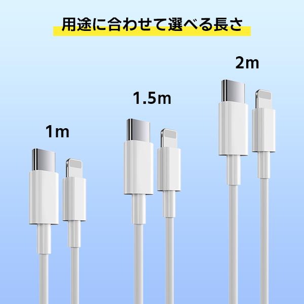 [2]Type-C to Lightning ケーブル 1本 選べる長さ 1m 1.5m 2m / PD 急速充電 データ通信 データ転送 スマホ iPhone 充電 コード ライトニング USB タイプC