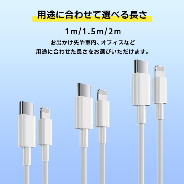 [3]USB iPhone Lightning ケーブル 1本 長さ選べる 1m 1.5m 2m / PD 急速充電 データ通信 データ転送 スマホ 充電 コード ライトニング タイプA
