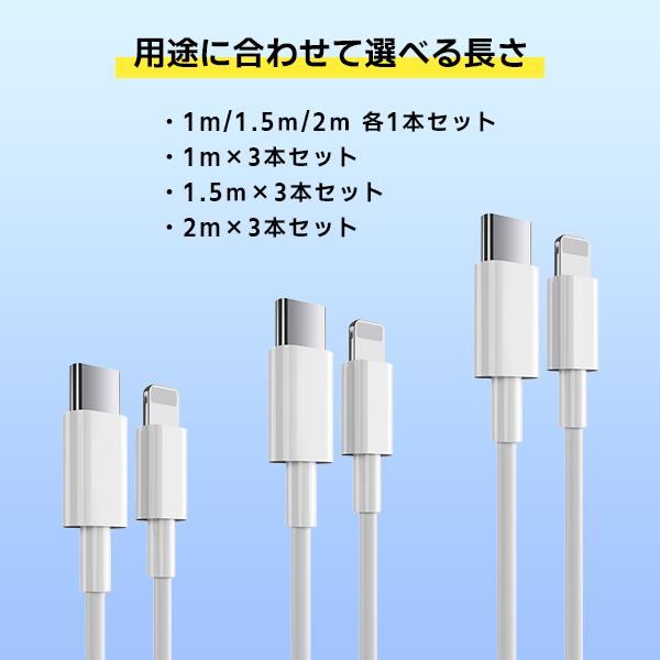 [3]USB iPhone Lightning ケーブル 長さ選べる3本セット 1m 1.5m 2m / PD 急速充電 データ通信 データ転送 スマホ 充電 コード ライトニング タイプA