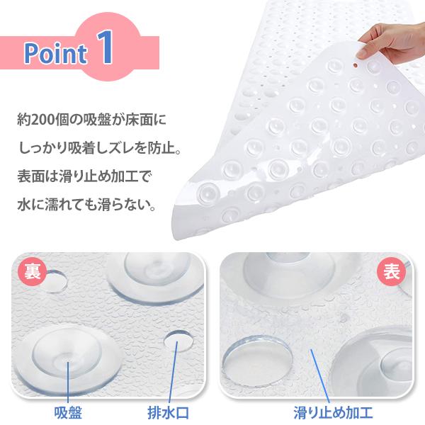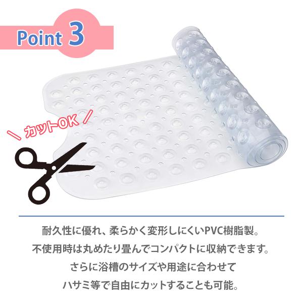 滑り止めマット お風呂 入浴 バスマット 浴槽 浴室 転倒防止 滑り防止 カット可 洗濯可 PVC樹脂 子供 妊婦 高齢者 介護 吸盤 吸着 水捌け 40cm 100cm