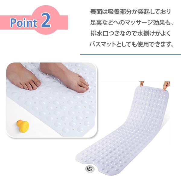 ( お風呂マット バス用品 お風呂用品 浴室 浴槽内 すべり止め 子供 妊婦 高齢者 介護 事故防止 足ふきマット 足拭きマット 速乾 排水 ズレない 吸盤式 滑らない ホワイト クリア )