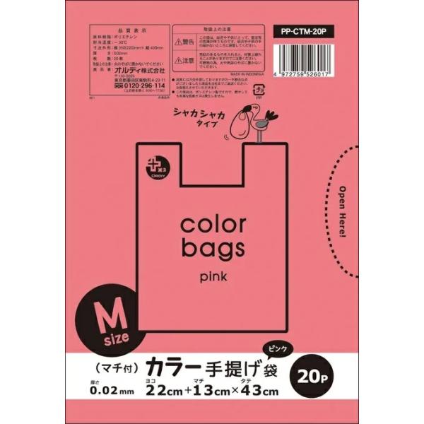 カラー手提げ袋(20枚)(4個までメール便可) オルディ レジ袋 ポリ袋 日用品 ビニール袋 赤 黄 緑 青 黒 マチ付き