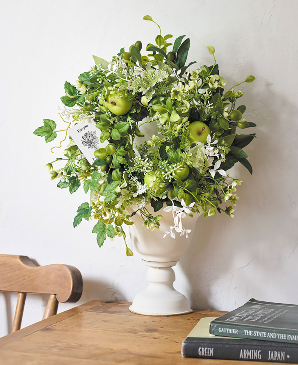 掛ける、吊るす、置くなどの装飾が楽しめるリースタイプです。