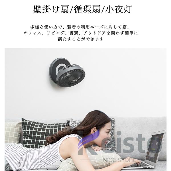 扇風機 小型 羽なし 腰掛け 左右首振り dcモーター 壁掛扇風機 静音 4000mAh大容量 空気循環 8畳 換気 LEDライト 小型 軽量 省エネ 節電 おしゃれ 暑さ対策