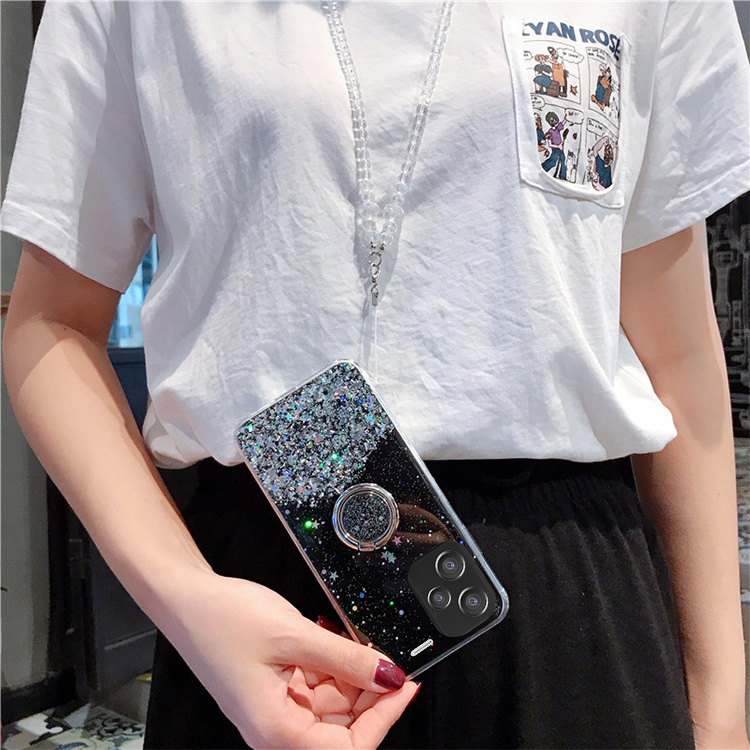 Redmi Note 13 Pro+ 5G ケース カバー 耐衝撃 ネックストラップ付き タンド機能 リング付き かわいいTPU ソフトケース エレガント きらきら おしゃれ