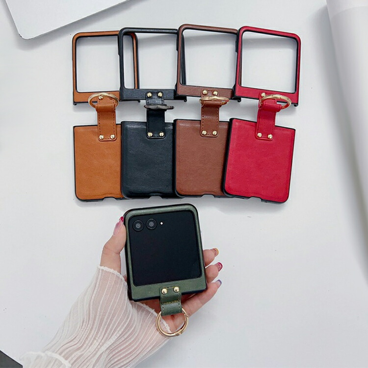 Razr 60/60s/60d ケース Razr60 Ultra 耐衝撃 カバー PUレザー 折りたたみ型 一体型リング付き スタンド機能 ストラップ穴 シンプル お洒落 Motorola モトローラ