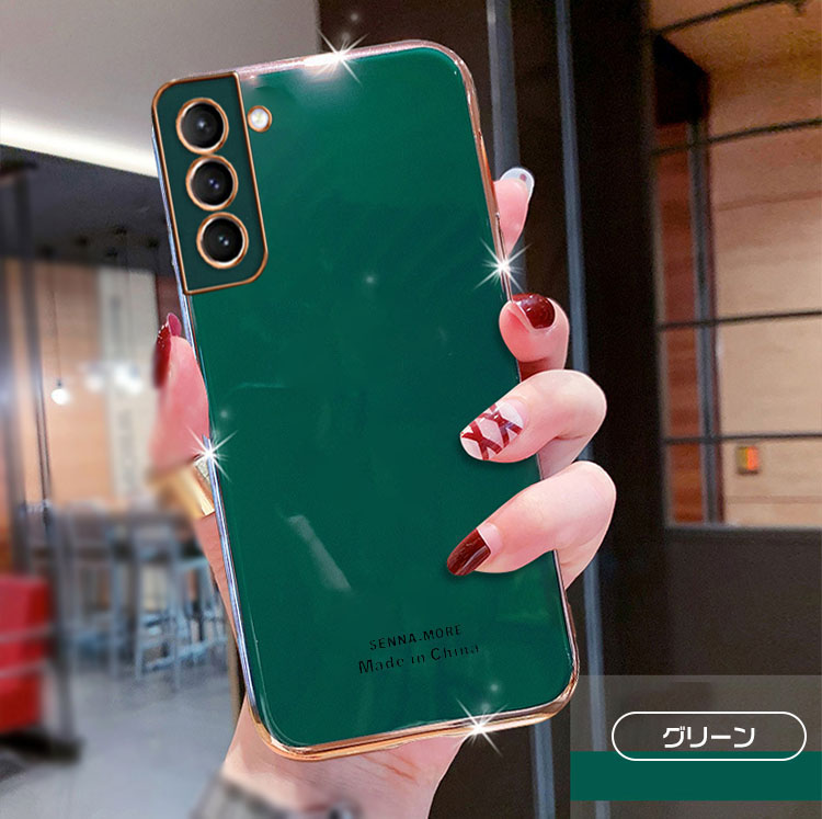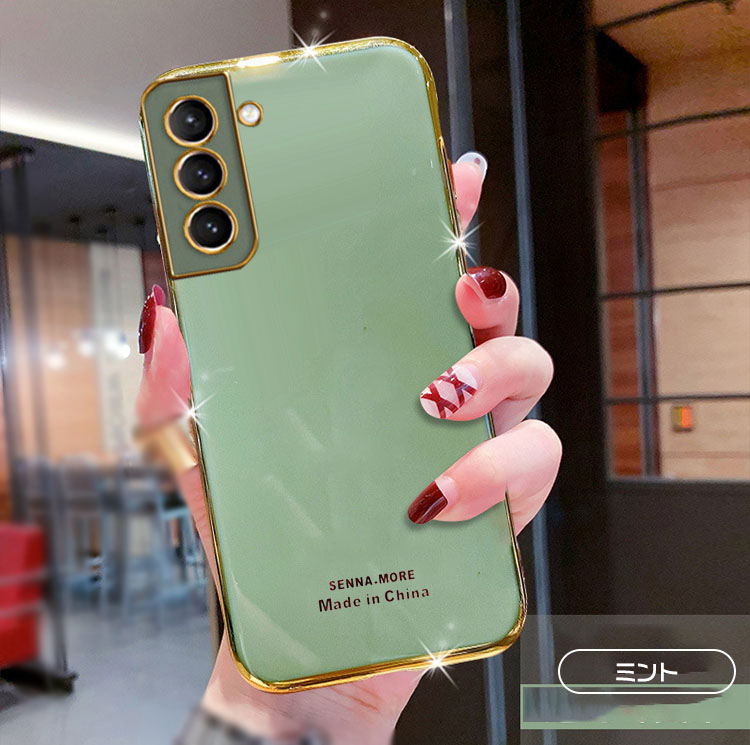 Galaxy S21/S21+/S21 Ultra ケース ストラップホール付き くすみカラー かわいい メッキ レディース 軽量 薄型 シンプル ニュアンスカラー