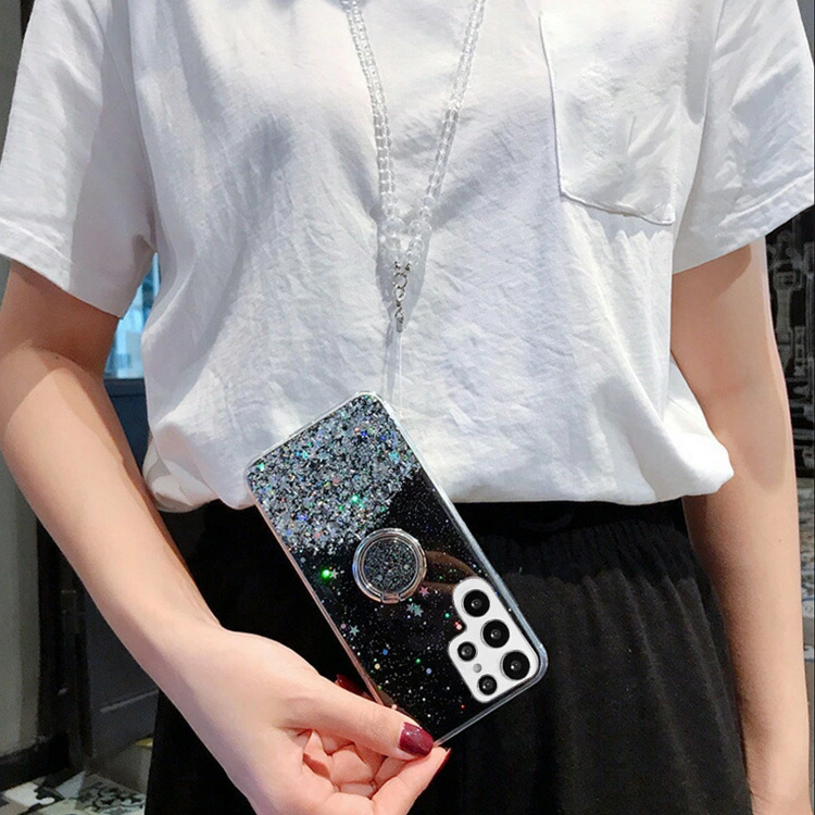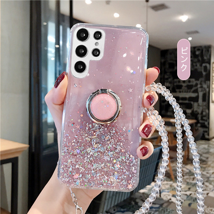 Galaxy S25 ケース S25+/S25 Ultra カバー 耐衝撃 ネックストラップ付き スタンド機能 リング付き TPU ソフトケース エレガント 可愛い お洒落 きらきら