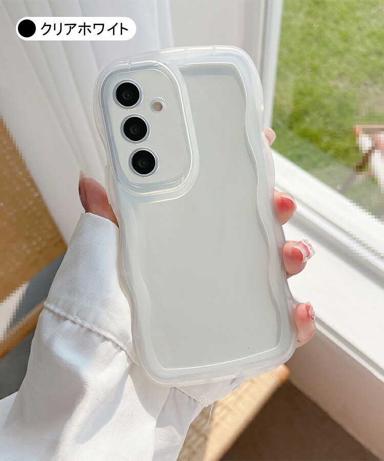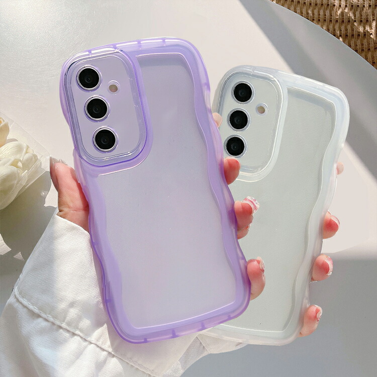 Galaxy S25 ウェーブ 波型 なみなみ ケース S25+/S25 Ultra カバー クリア 透明 TPU ソフト ケース 波状 ストラップ穴 可愛い お洒落 かわいい シンプル
