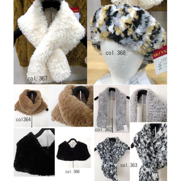 色は根本のカラーと毛先の白地がよりファーらしさを醸し出しており、1玉で襟元小物ができるコンセプトヤーンです。
