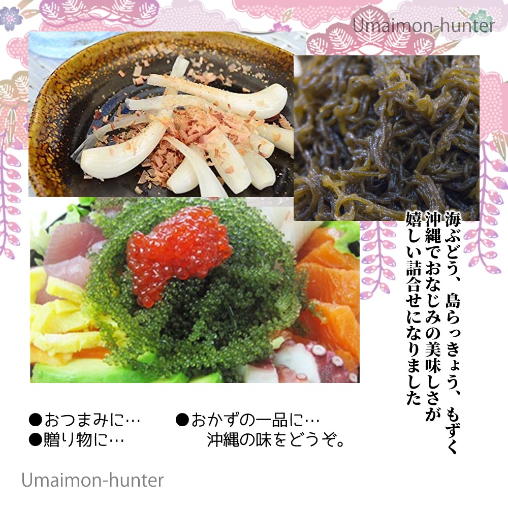 沖縄土産の定番、島らっきょう・もずく・海ぶどうをセットで