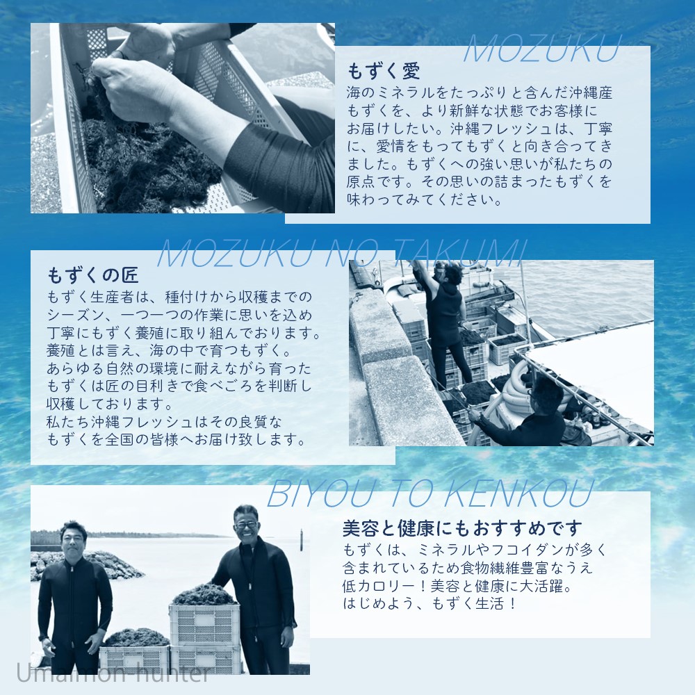 ※本製品に使用しているもずくは、エビが混ざる漁法で採取しております。生ものですので、解凍後は賞味期限に関わらず、お早めにお召上がり下さい。
