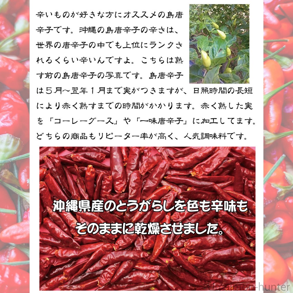 沖縄県産島唐辛子を100%使用しております。