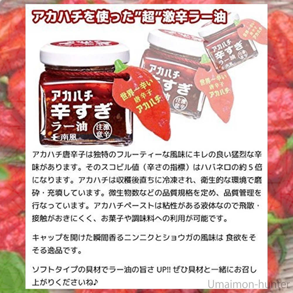 ハバネロよりも辛いアカハチを使用 超激辛ラー油
